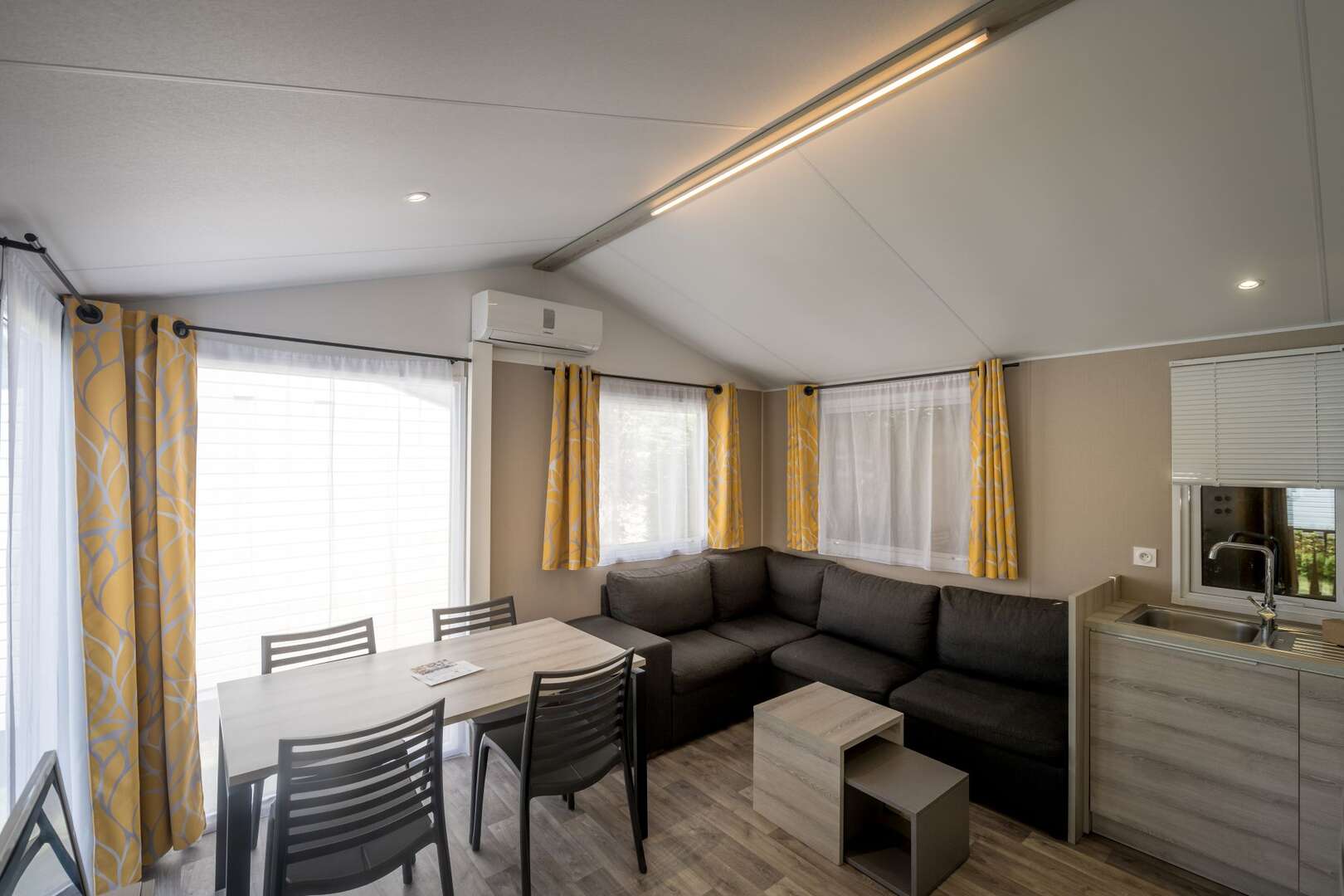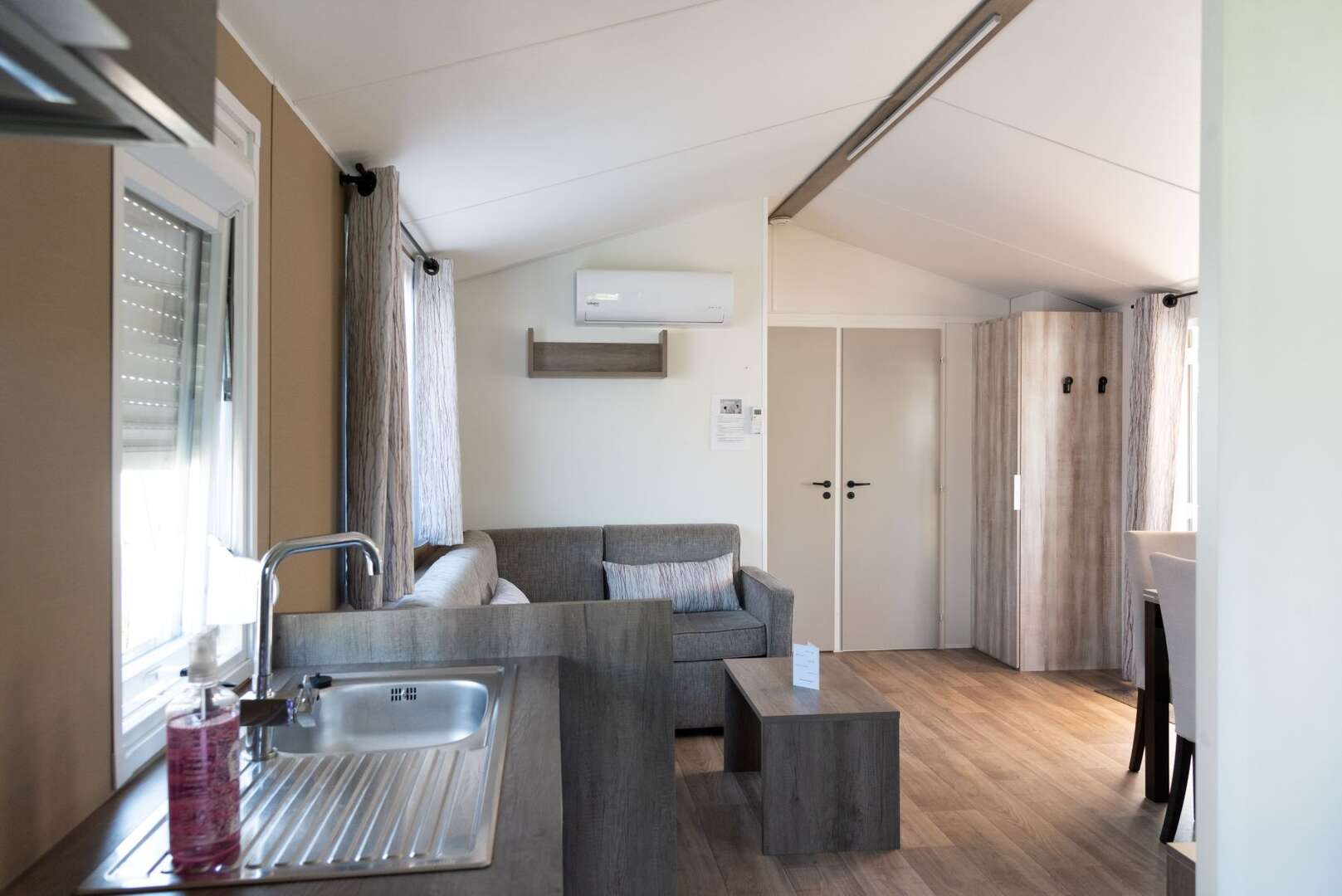 Onze standaard chalets met twee slaapkamers zijn voorzien van alle comfort voor een zorgeloos verblijf aan zee. Je kunt gebruik maken van de ingerichte keuken met microgolfoven, koelkast met vriesvak, kookvuur en alle toebehoren, een badkamer met douche, apart toilet, knusse zithoek met televisie die maar liefst 130 nationale en internationale zenders kan ontvangen, het overdekt zonneterras met tuinmeubelen en ligzetels. Meer weten? Ga naar FAQ.