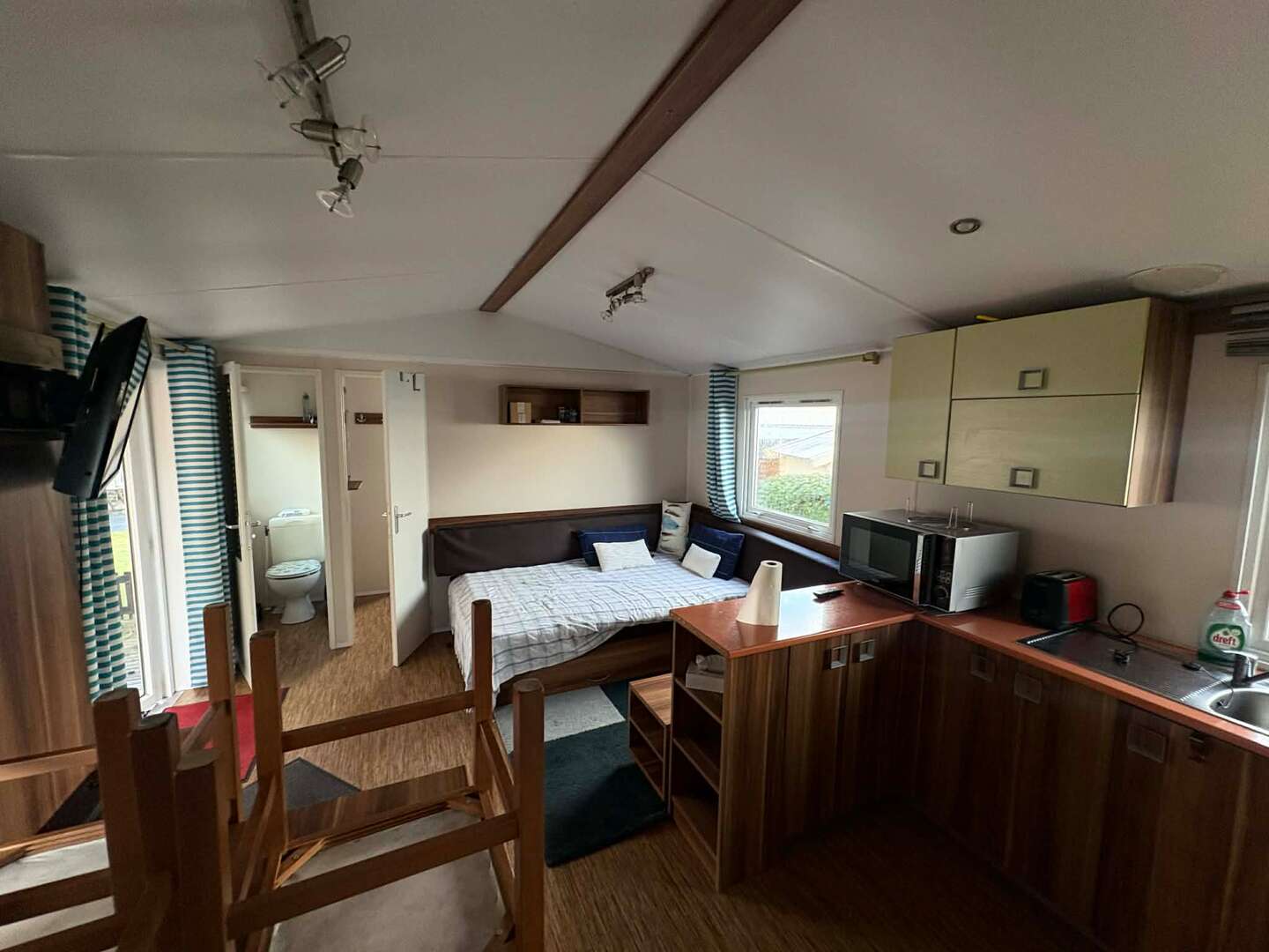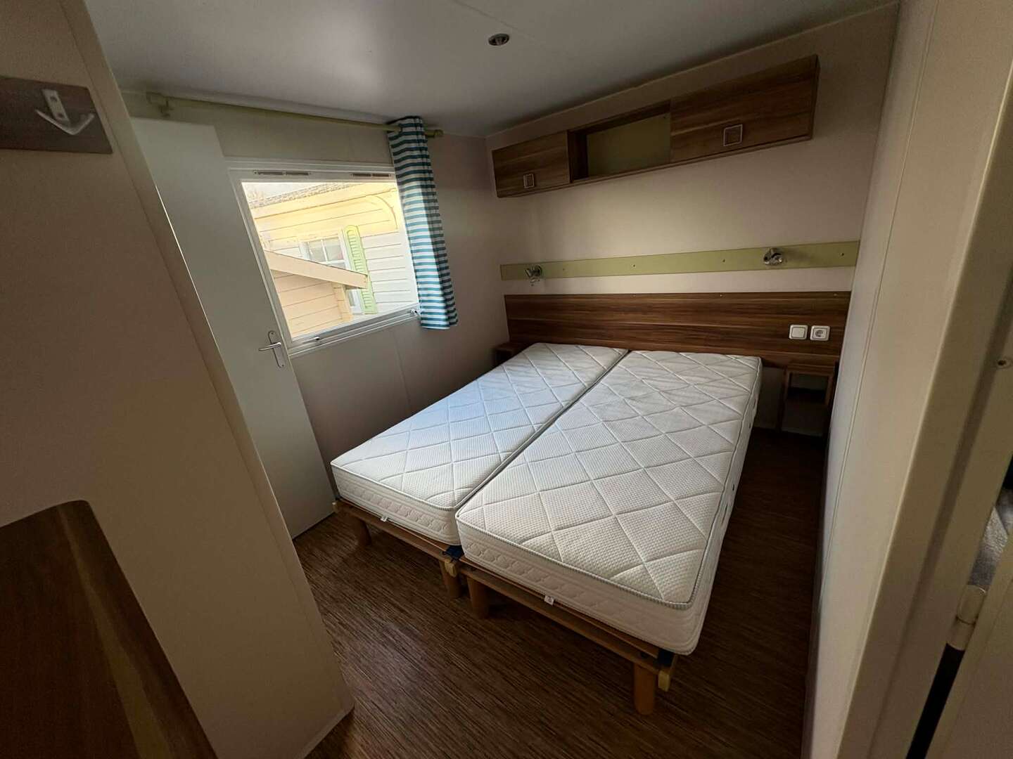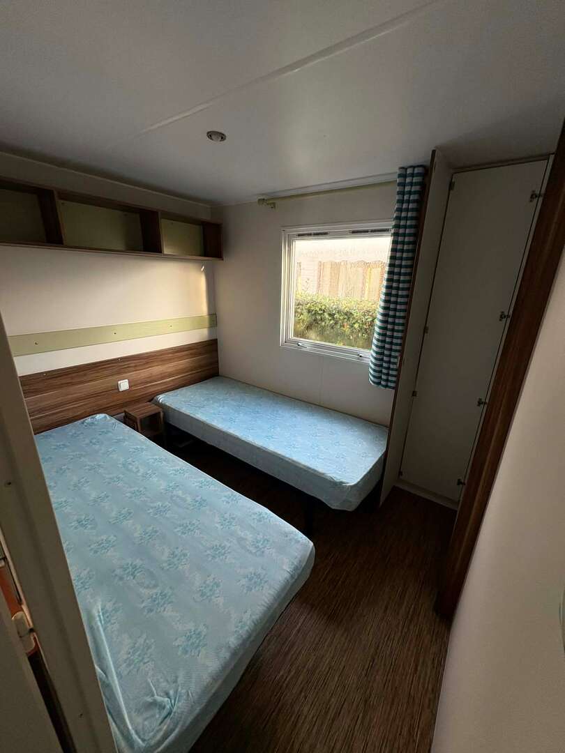 - Le mobile home dispose de deux chambres, une chambre avec un lit double et une chambre avec deux lits simples.